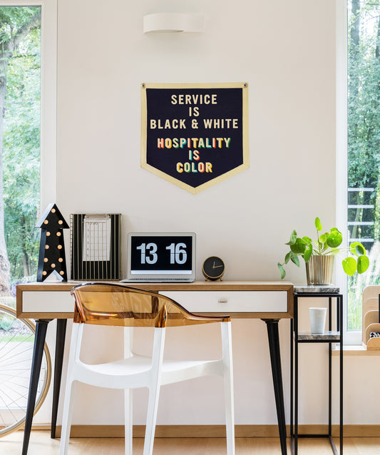 PRESALE: Service Is Black & White Hospitality Is Color Camp Flag • Unreasonable Hospitality x Oxford PennantRegular price $60.00Regular price Sale price $ 60.00Unit price perSold out
