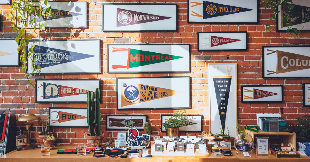 Brett Mikoll and Dave Horesh, Co-founders at Oxford Pennant, recognized that pennants had once been revered as icon keepsakes for over a century but had largely become cheap, low-quality souvenirs produced overseas with synthetic materials. The fellas revived America’s beloved pennant tradition with one noble objective: beer money. In the time since those humble beginnings, we’ve grown from stacking and shipping inventory from our apartments on nights and weekends to operating a business that designs, manufactures and ships under one roof.