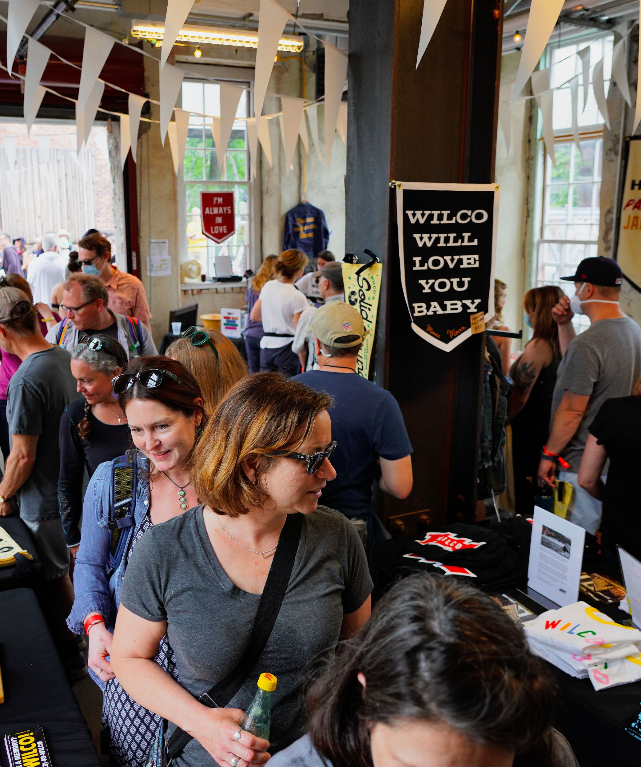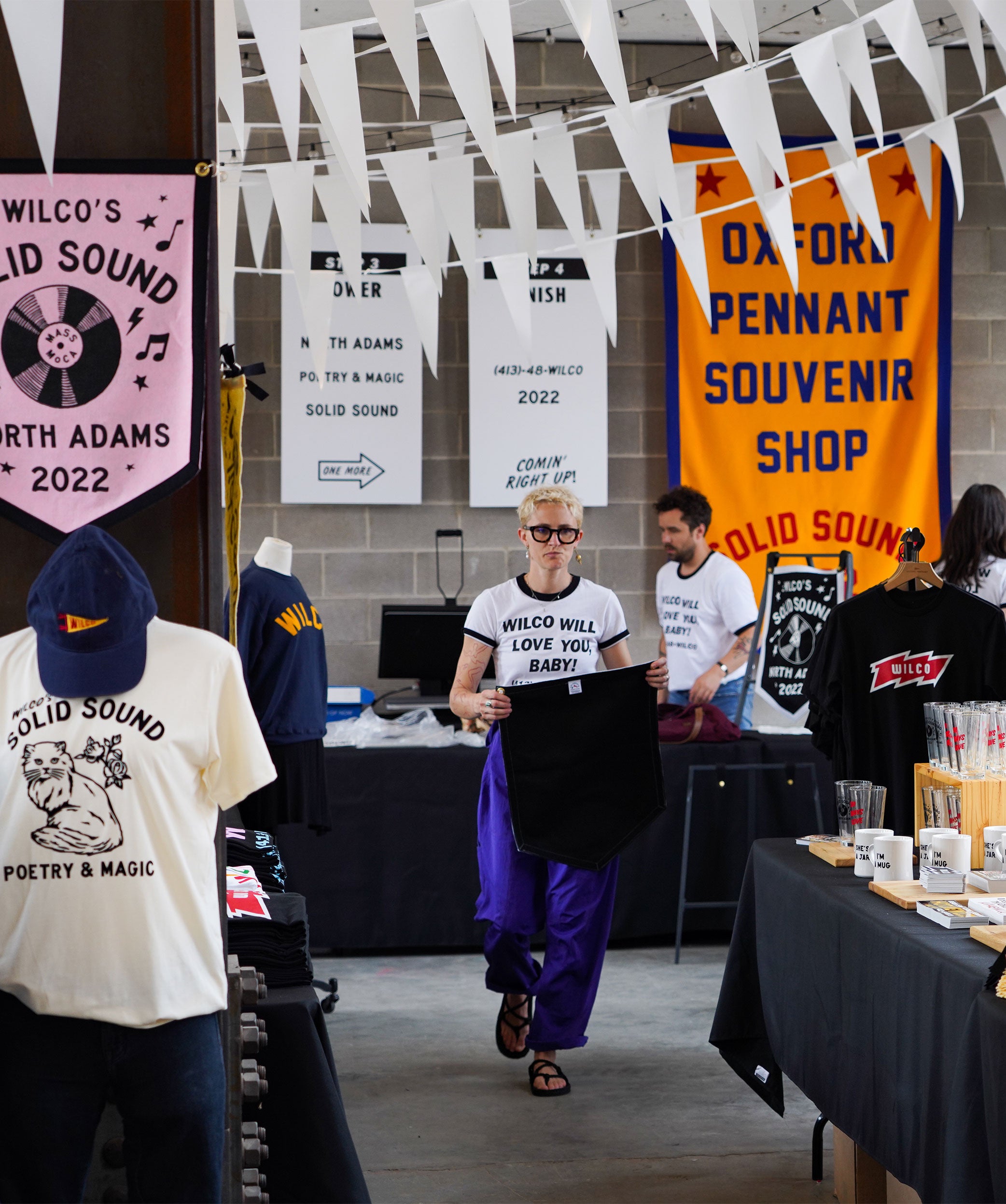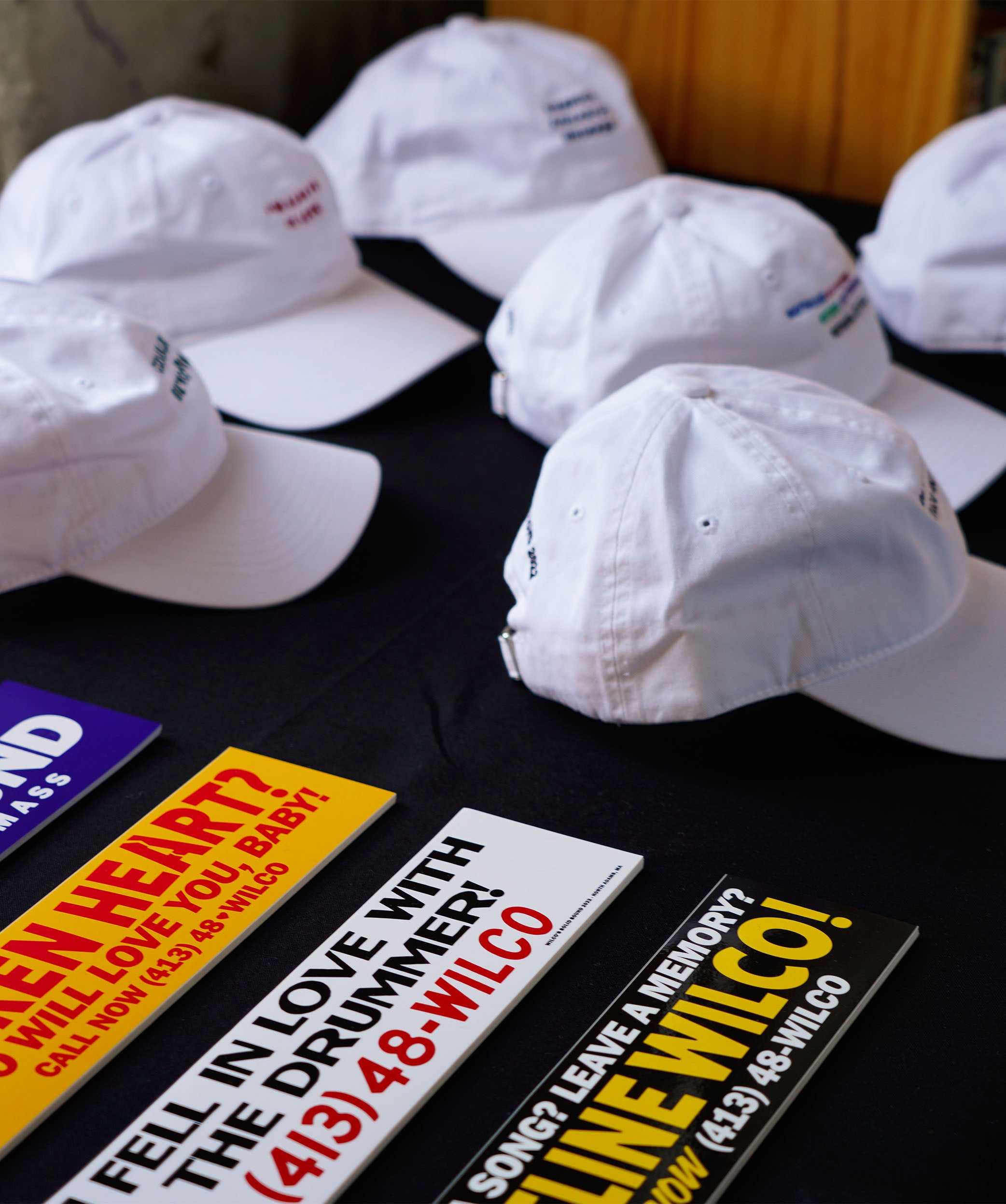 We collaborated with Wilco on everything from new pennants, banners and camp flags to enamel pins, chenille and embroidered patches, tees, mugs and tote bags... it actually might have been easier to list the things we didn’t put Wilco lyrics on. The band even gave us some of their old gear, vintage posters and signed books to make the events extra-special.
