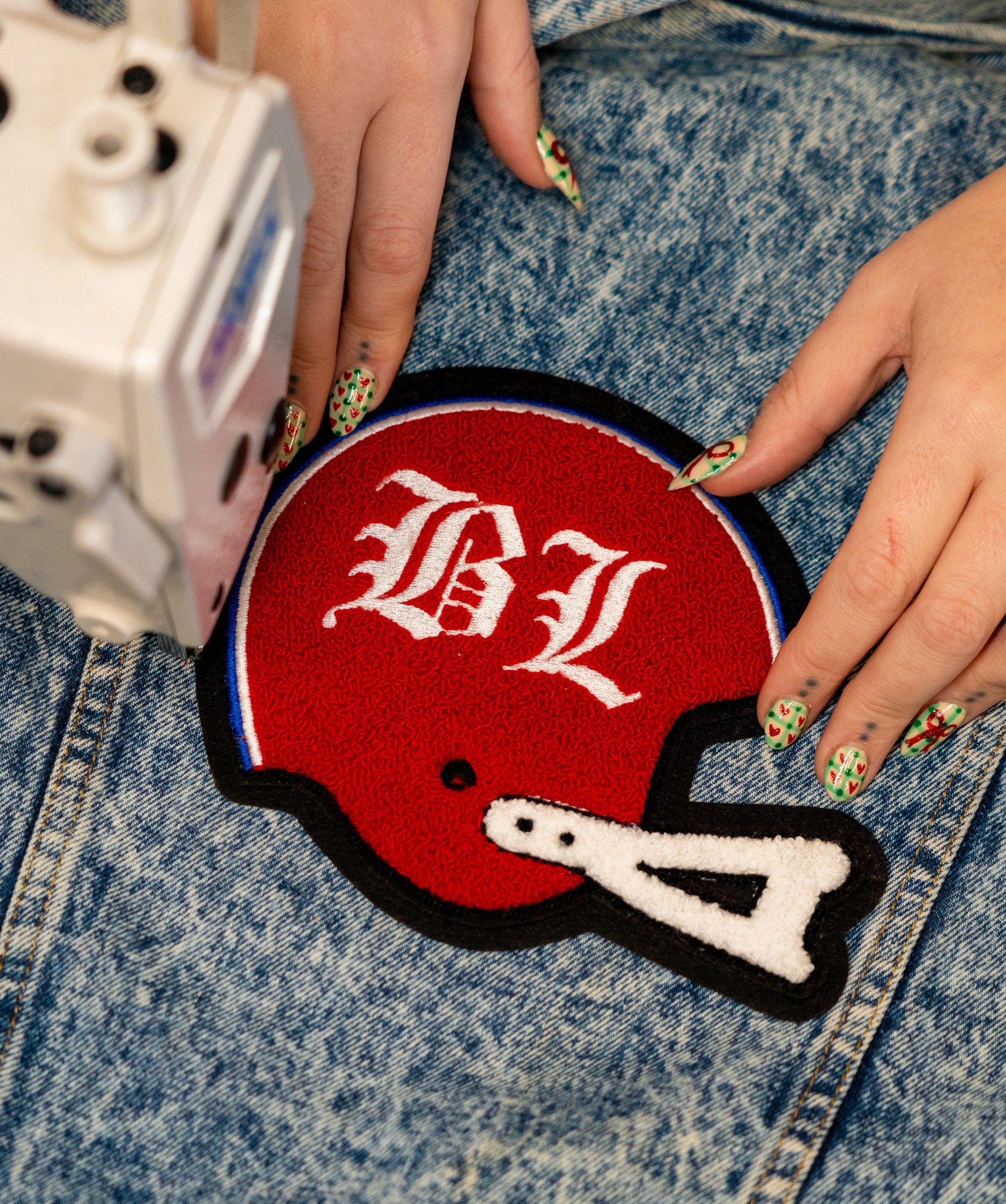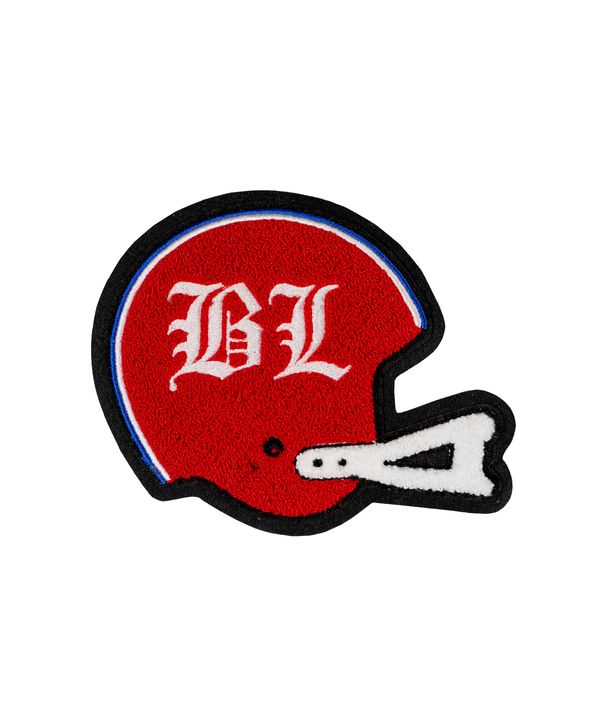 This heavyweight chenille patch features a red Better Lovers football helmet design with classic varsity lettering — a nod to Buffalo grit and hardcore pride. Perfect for your battle jacket or denim vest, this embroidered chenille patch requires stitching.
