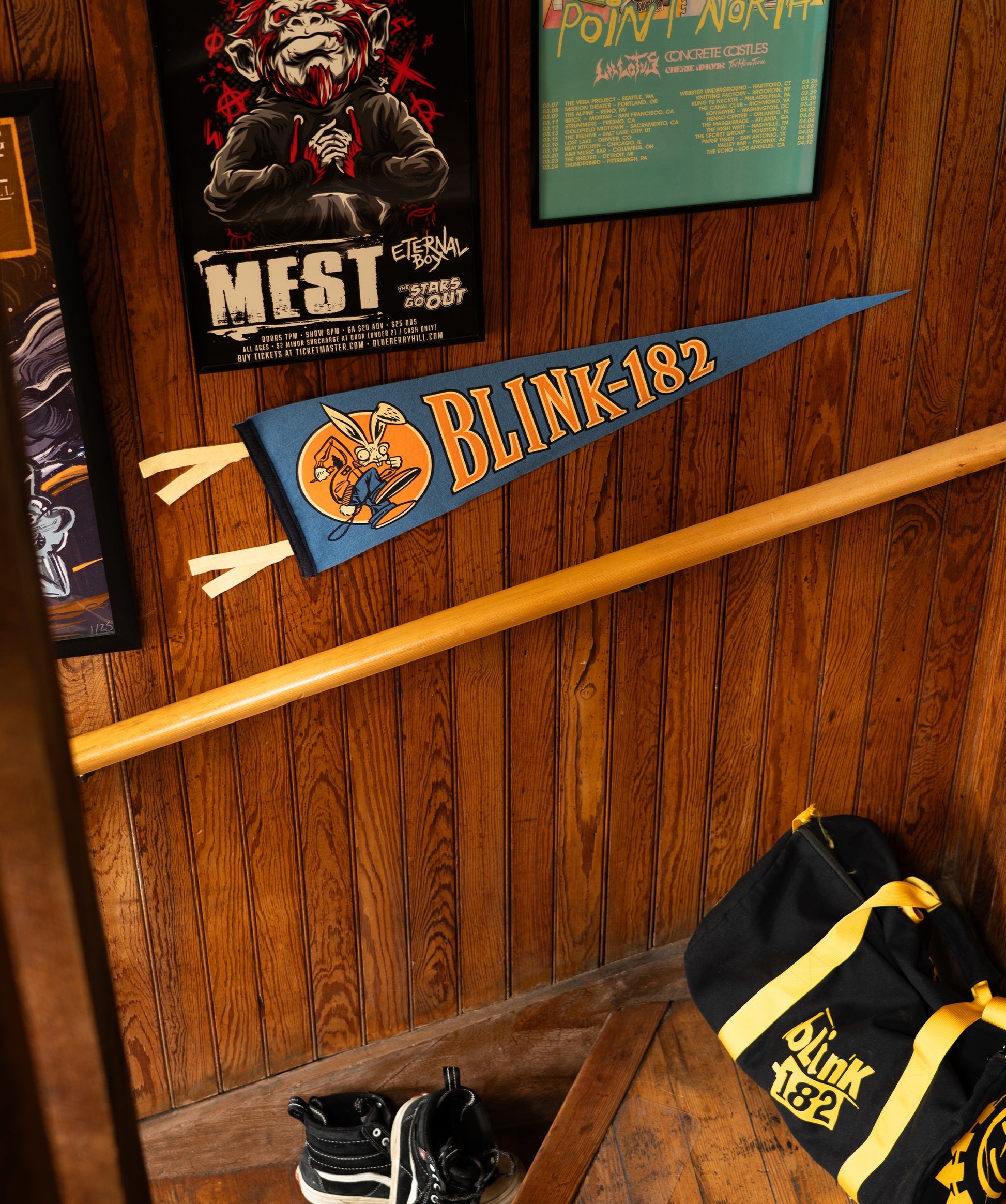 If your childhood smelled like Warped Tour dust and Hot Topic, this one’s for you. Featuring blink-182’s chaotic 90s bunny logo and classic type, this pennant screams “I still know every word to Josie.” Hang it in your garage, bedroom, or wherever teenage angst lives rent-free.