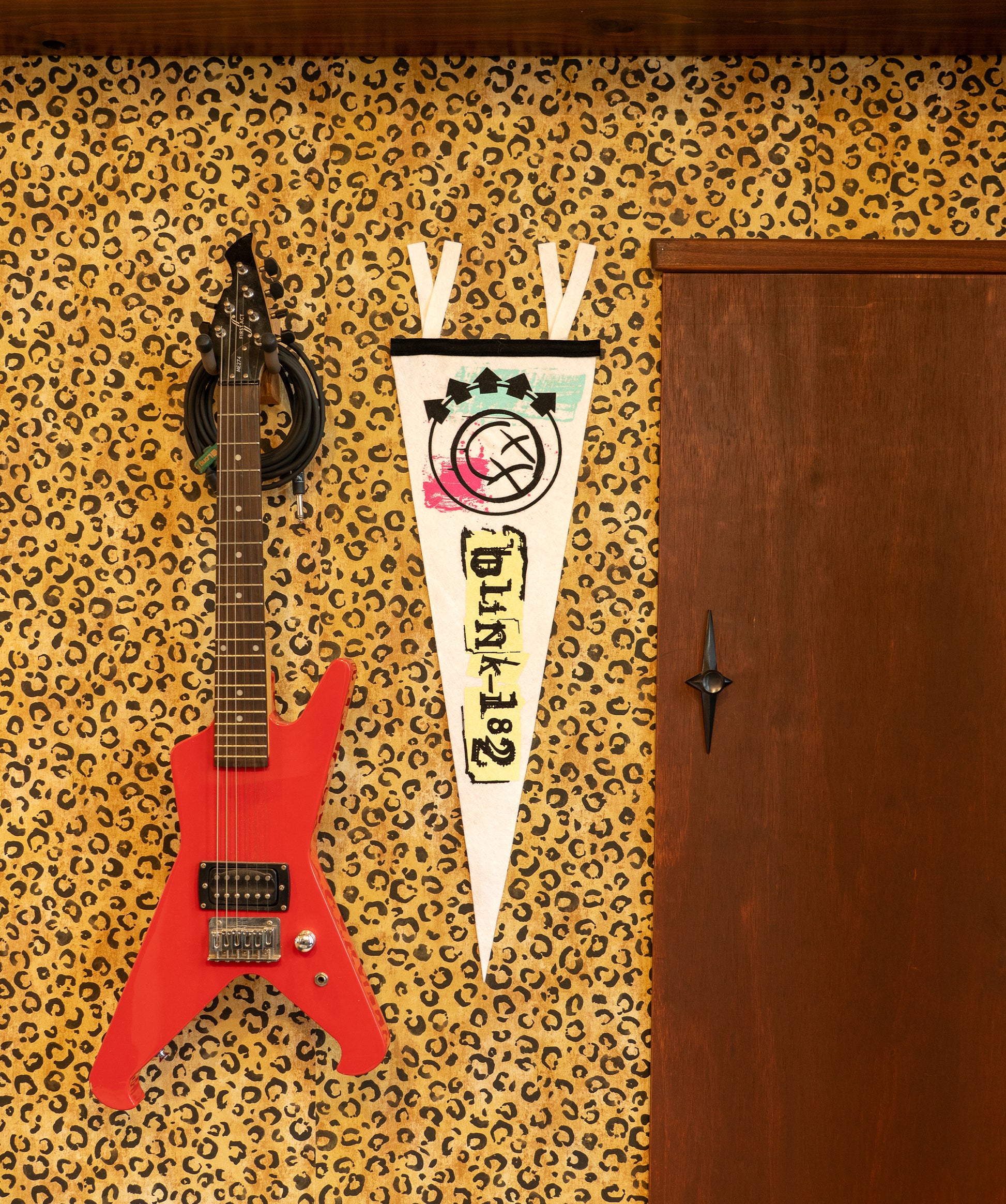 An ode to eyeliner, angst, and the album that changed everything. This white pennant features the unmistakable smiley logo from blink-182’s self-titled record, complete with neon smudges and tape deck vibes. Basically, it’s your AIM away message in pennant form.