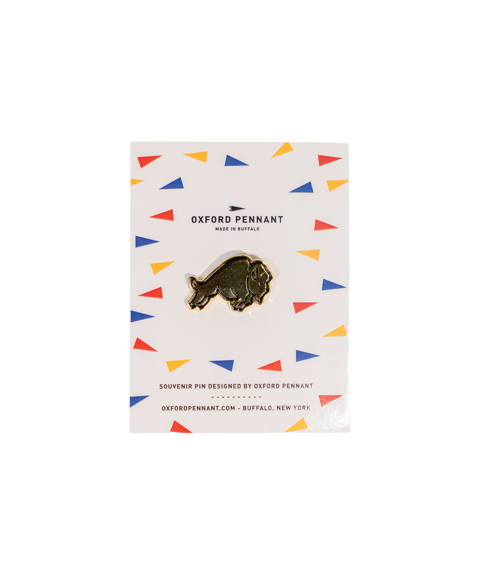 Rep your Buffalo pride—but in a classy way—with this simple gold enamel pin featuring the image of a jumping buffalo. Made in collaboration with Lost Lust Supply.