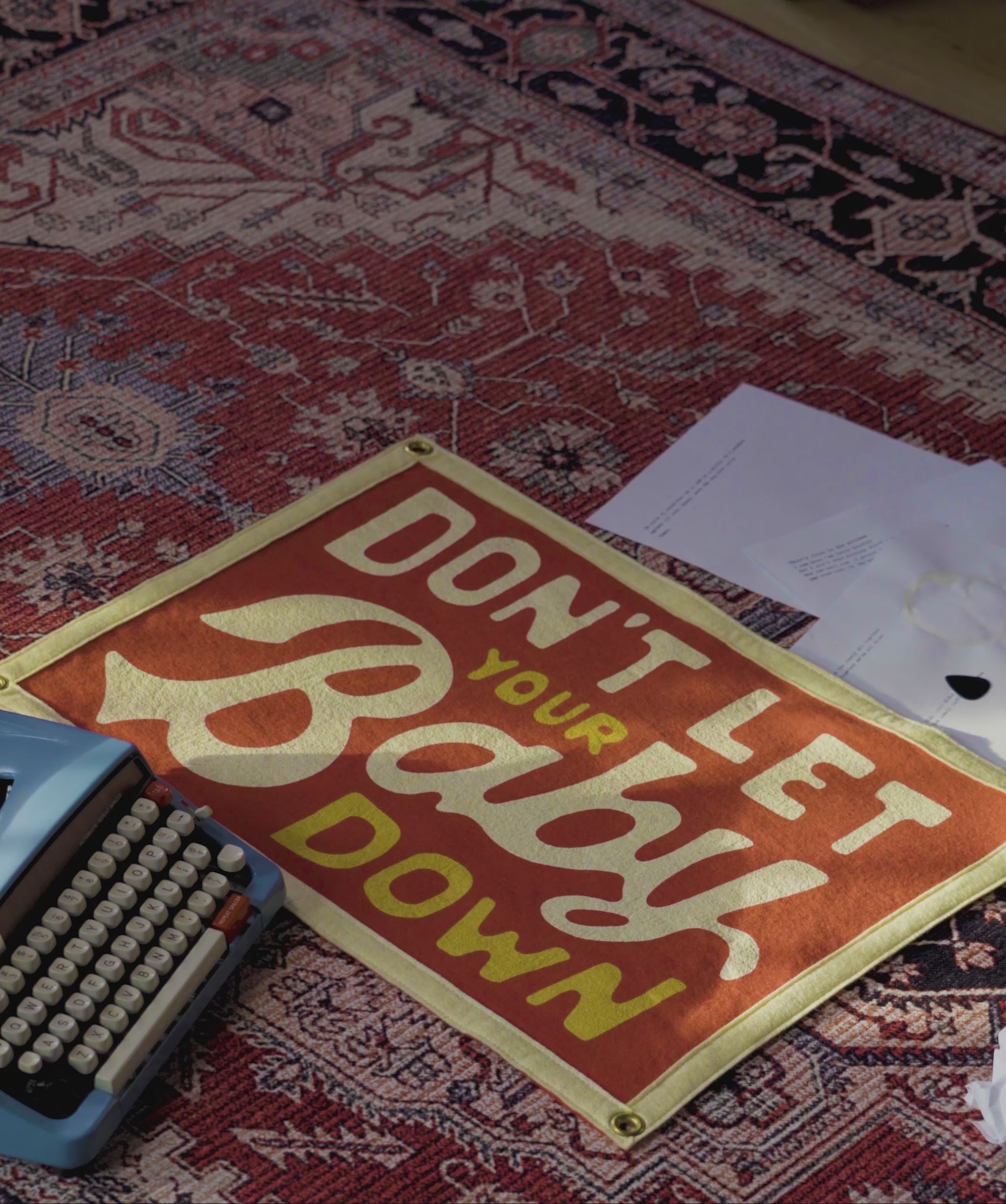 You can hang our products using thumb tacks, framing nails or even poster tacks! Our camp flags are grommeted so there’s no need to put a tack directly through the felt. They also look great with suction hooks for window hanging!