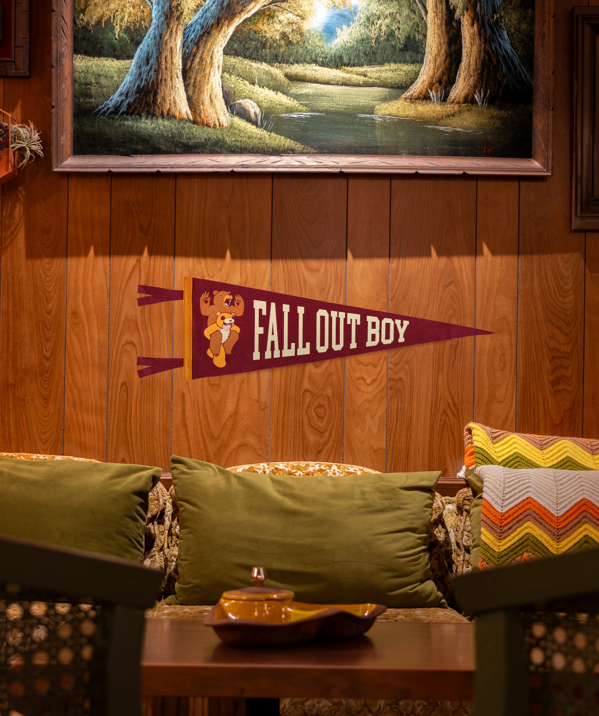 Oxford Pennant x Fall Out Boy is back with new, officially licensed pennants, camp flags and customizable lyric flags! This crimson flag is the perfect addition to any fans bedroom, living room or gallery wall.