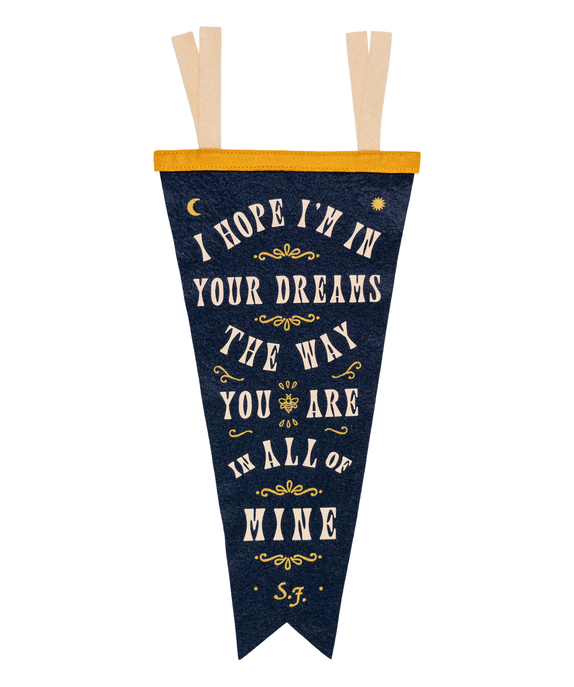 This handmade Sierra Ferrell pennant brings the romance of "I Hope I'm In Your Dreams The Way You Are In All Of Mine" to any bedroom, dressing room, or reading nook that needs a little magic on the wall.