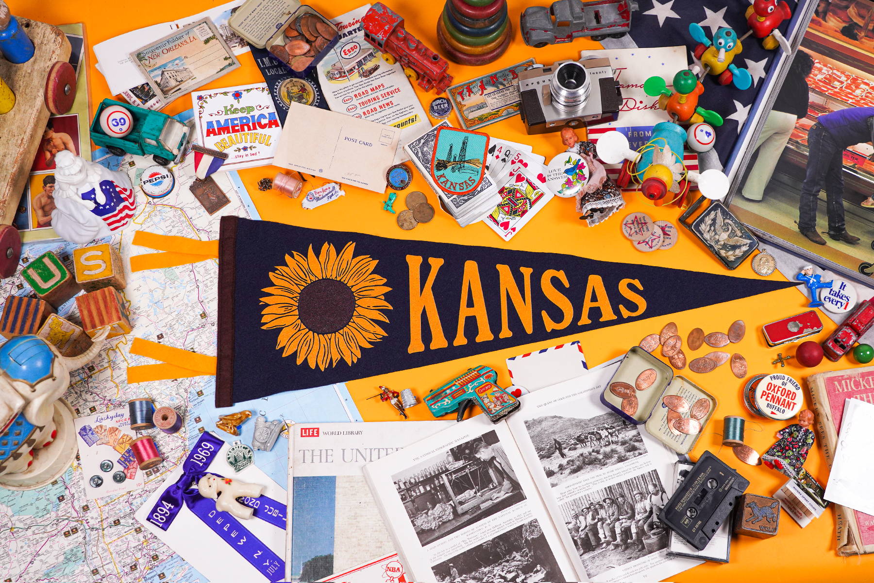 Pay no attention to the man behind the pennant. This navy, brown, and gold pennant—featuring the image of a beautiful sunflower—gives residents of The Wheat State a beautiful way to celebrate their roots.