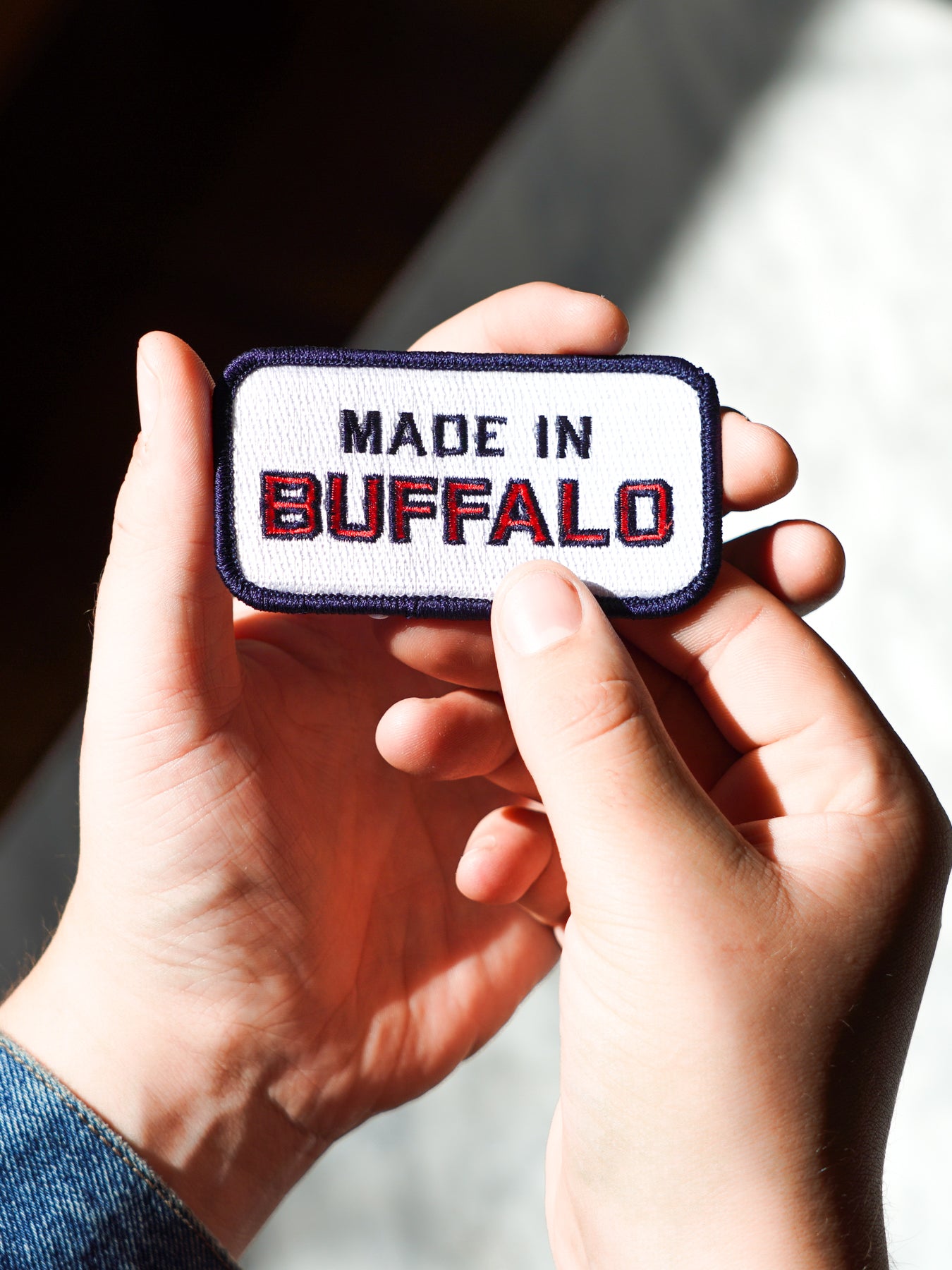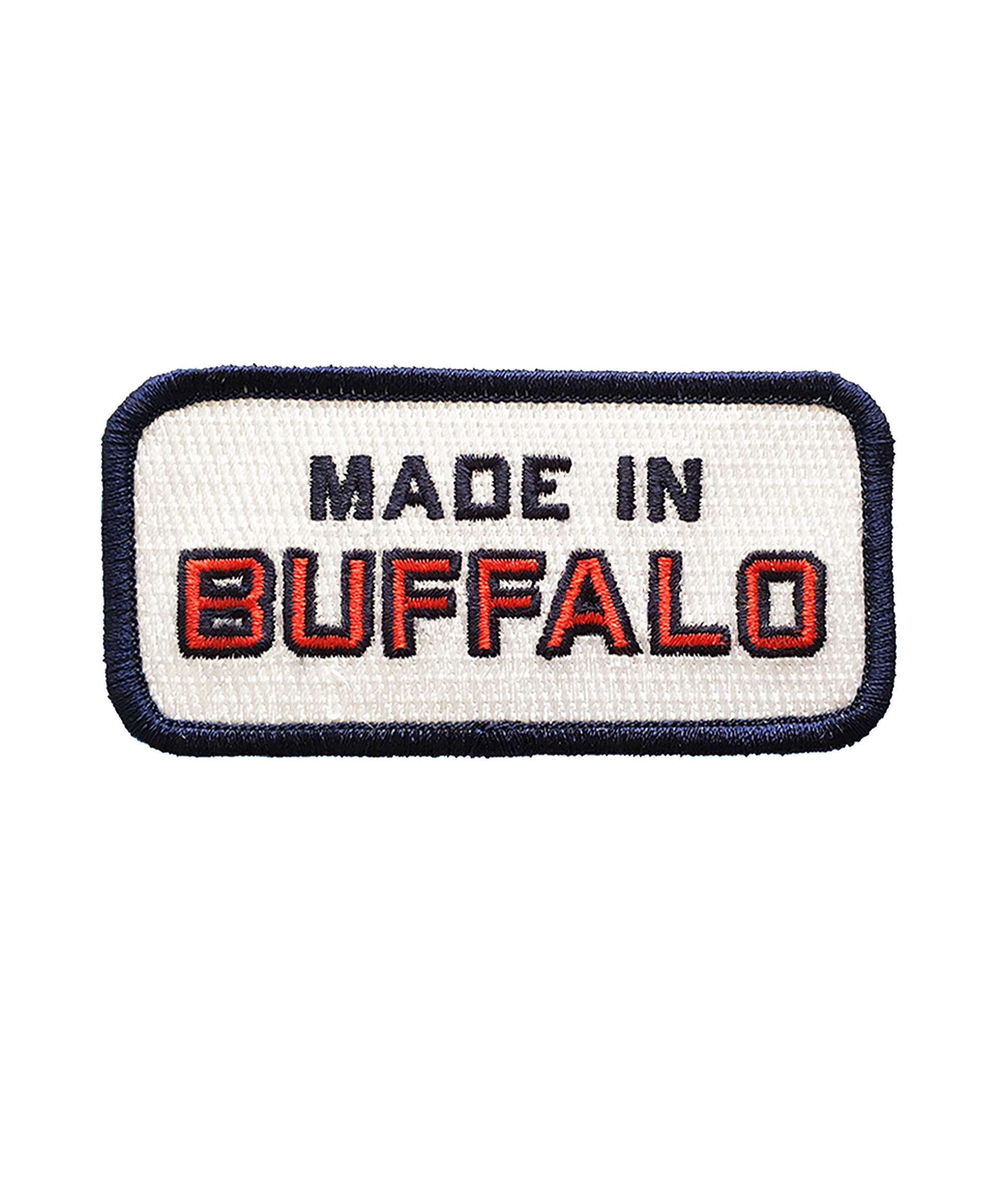 "Made In Buffalo" is a commitment to our customers and staff that they'll always get the best of what our city embodies: quality, friendship, and big fun. Never forget it with this custom white, red, and navy-bordered embroidered patch.