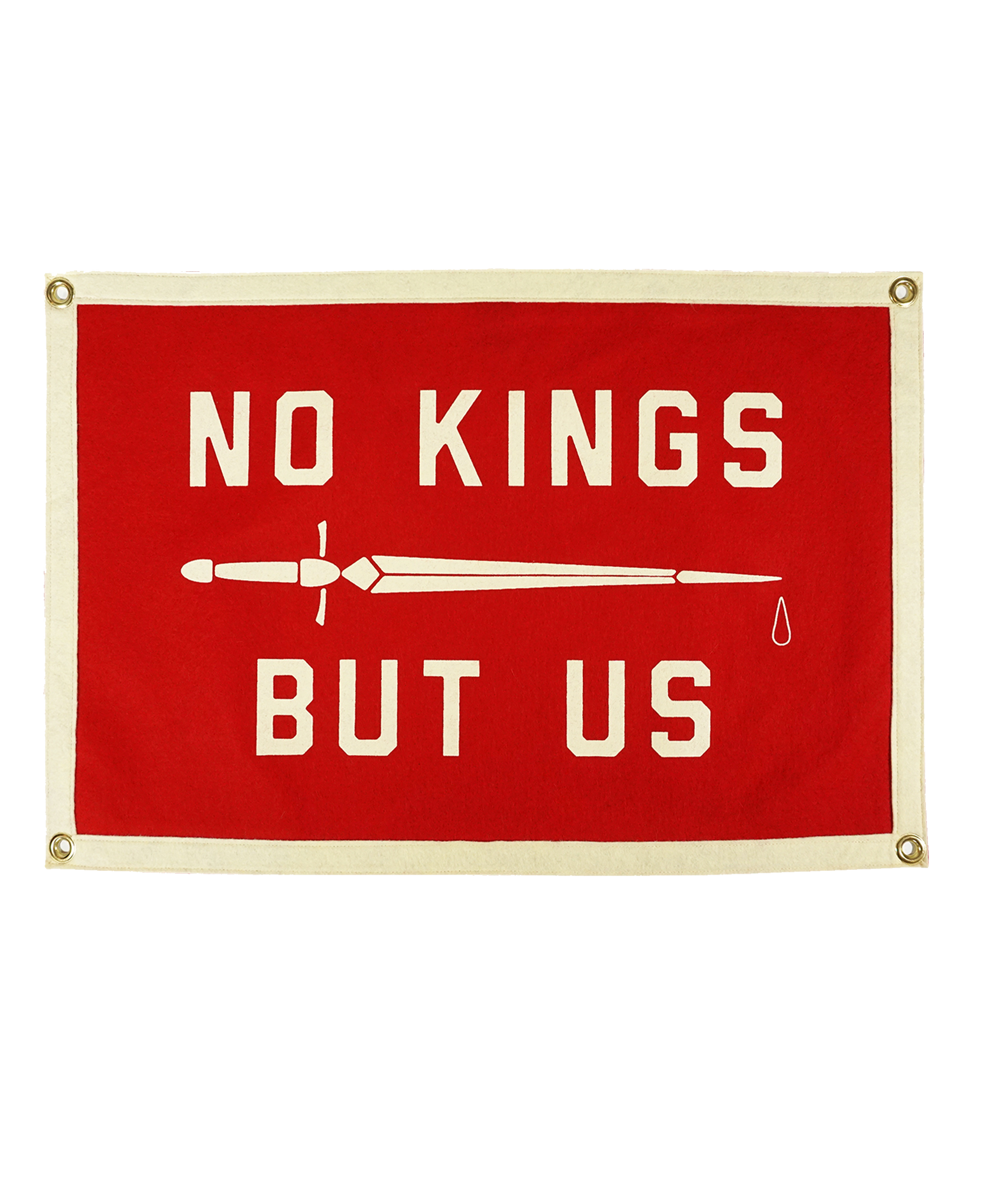 Remember that you are royalty. This red and cream camp flag, featuring the image of a sword with a droplet falling from its blade, is part of a collaboration with United By Blue, featuring Philadelphia-inspired designs by True Hand Society.
