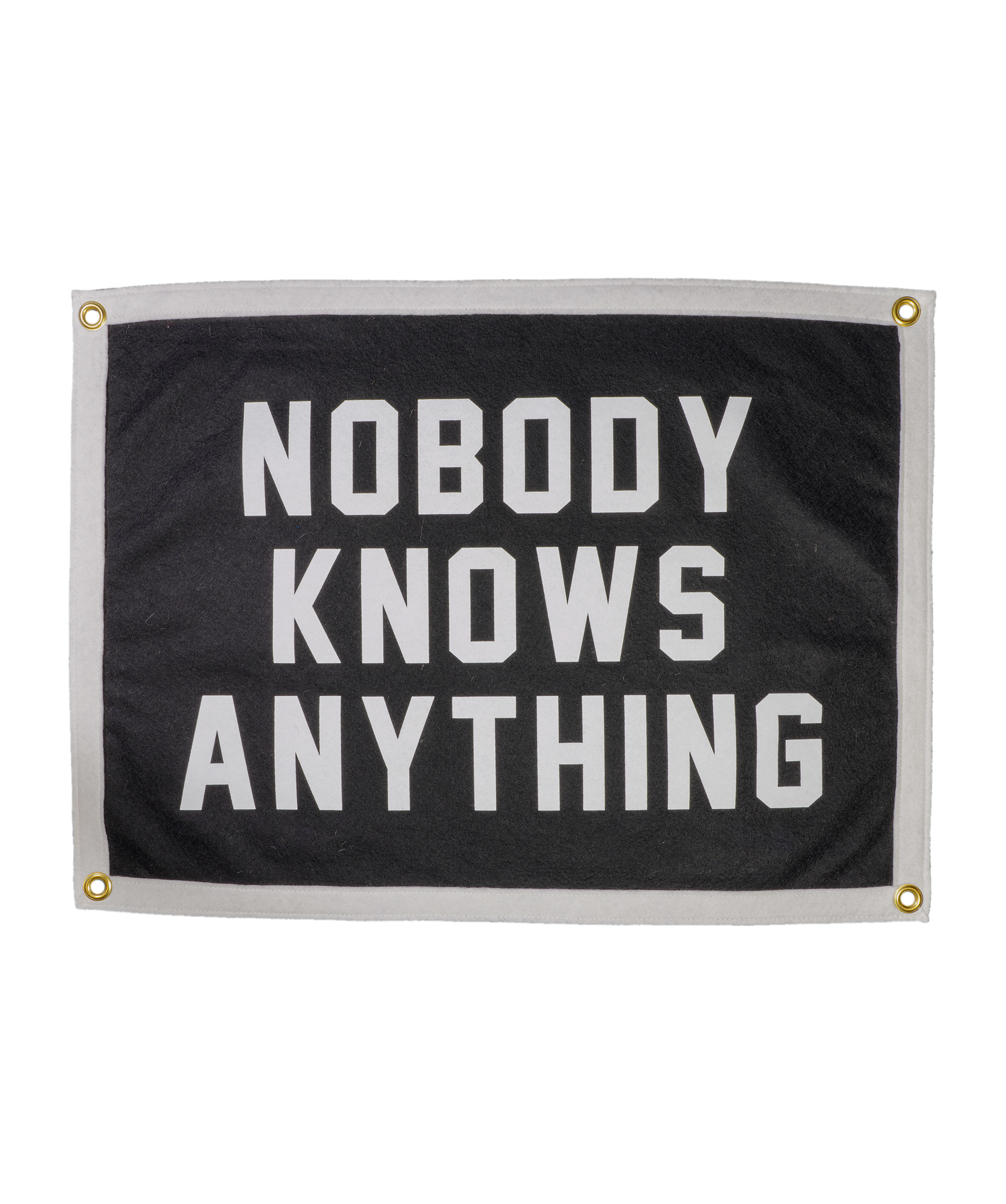 It’s the blind leading the blind. We’re all a little clueless and making things up as we go along—keep yourself and others humble with this black and white camp flag.