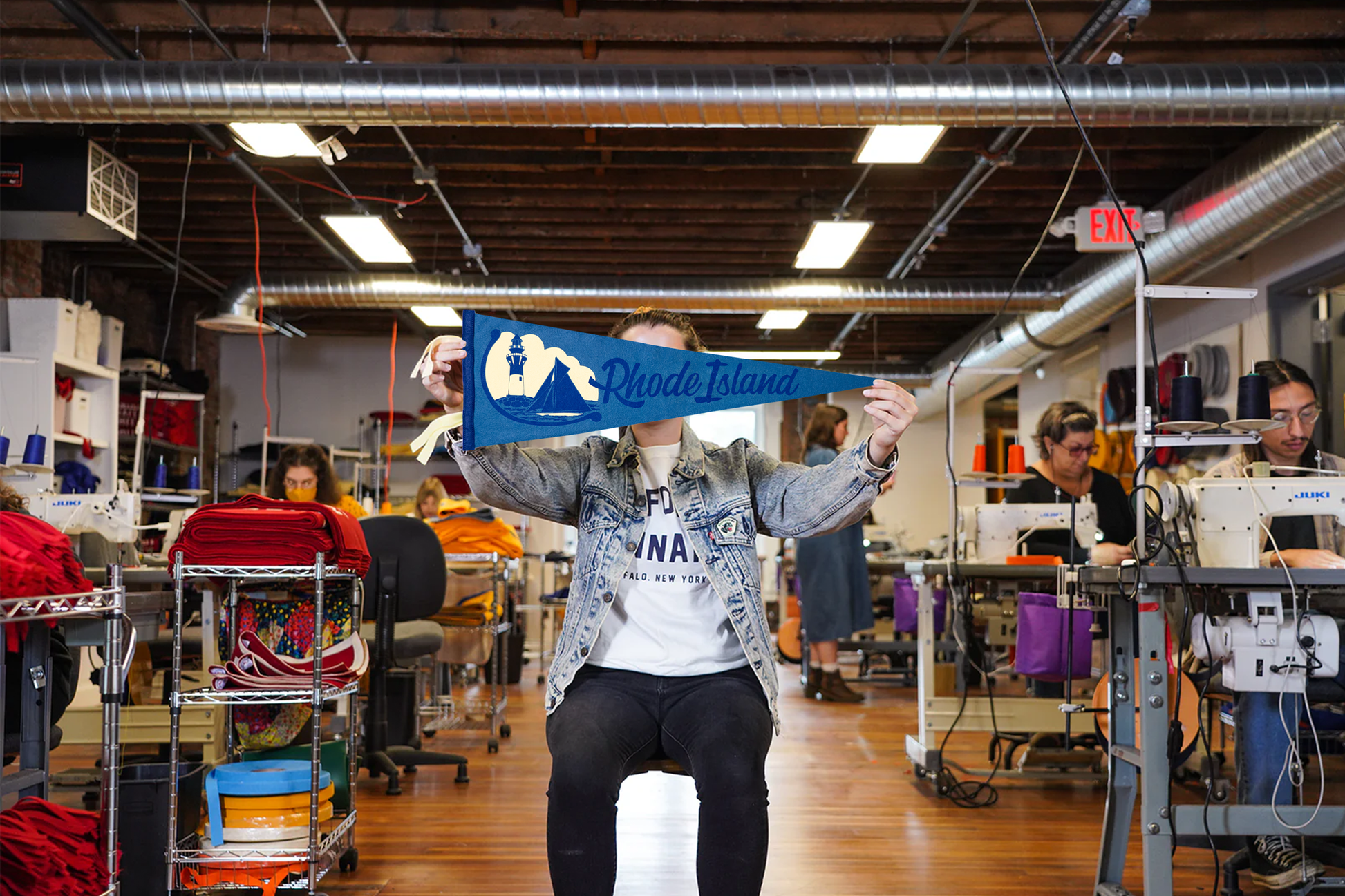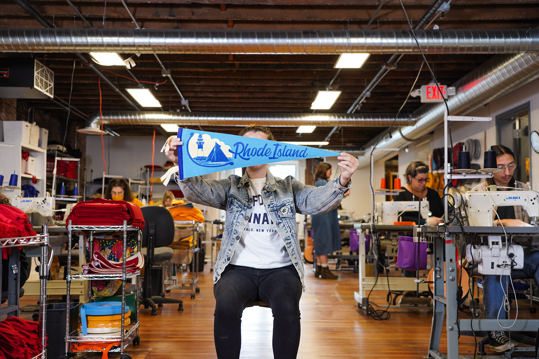 All Oxford Pennant felt products are made using a hands-on process at our manufacturing studio. We design, cut, sew, print and ship everything in downtown Buffalo, New York!