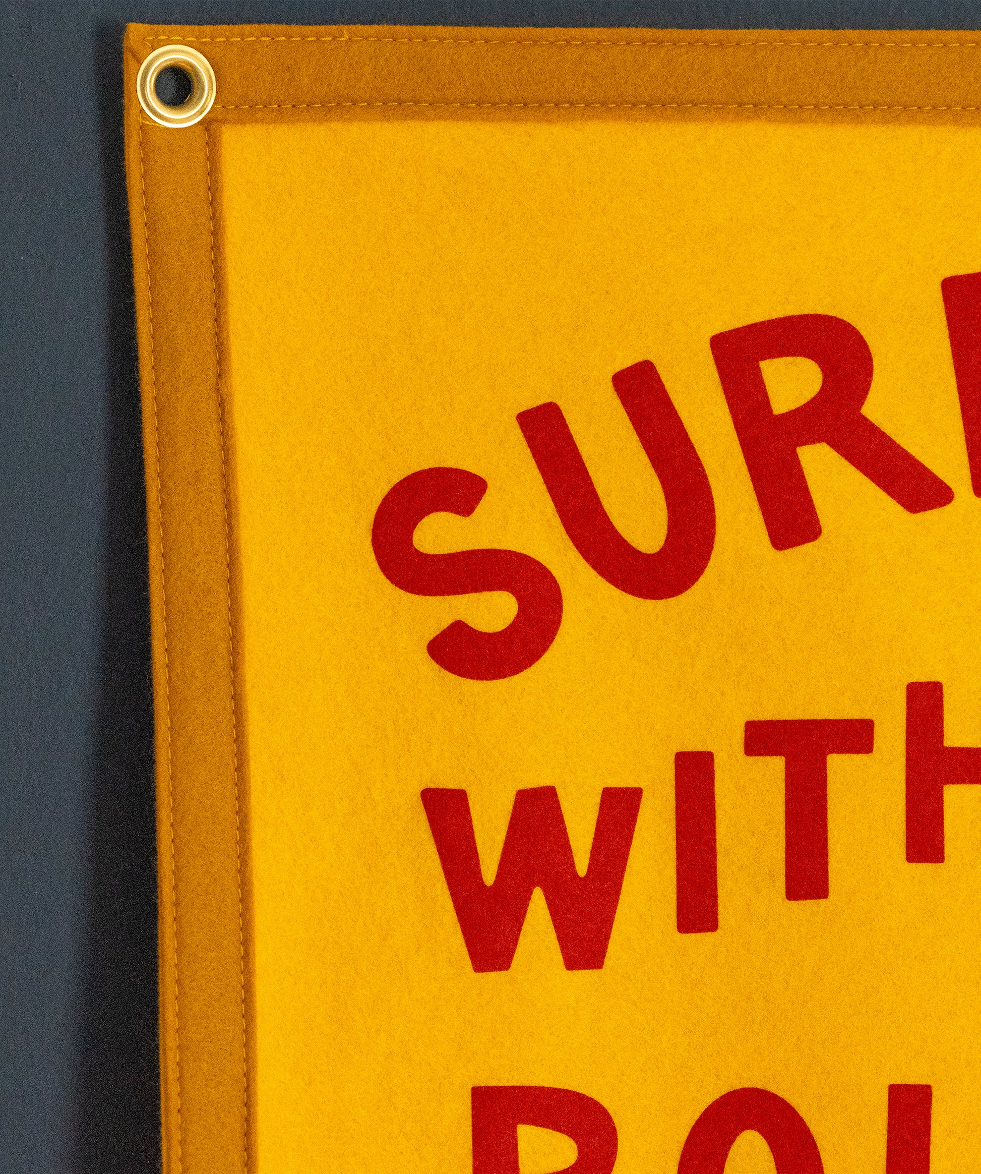 You can hang our products using thumb tacks, framing nails or even poster tacks! Our camp flags are grommeted so there’s no need to put a tack directly through the felt. They also look great with suction hooks for window hanging!