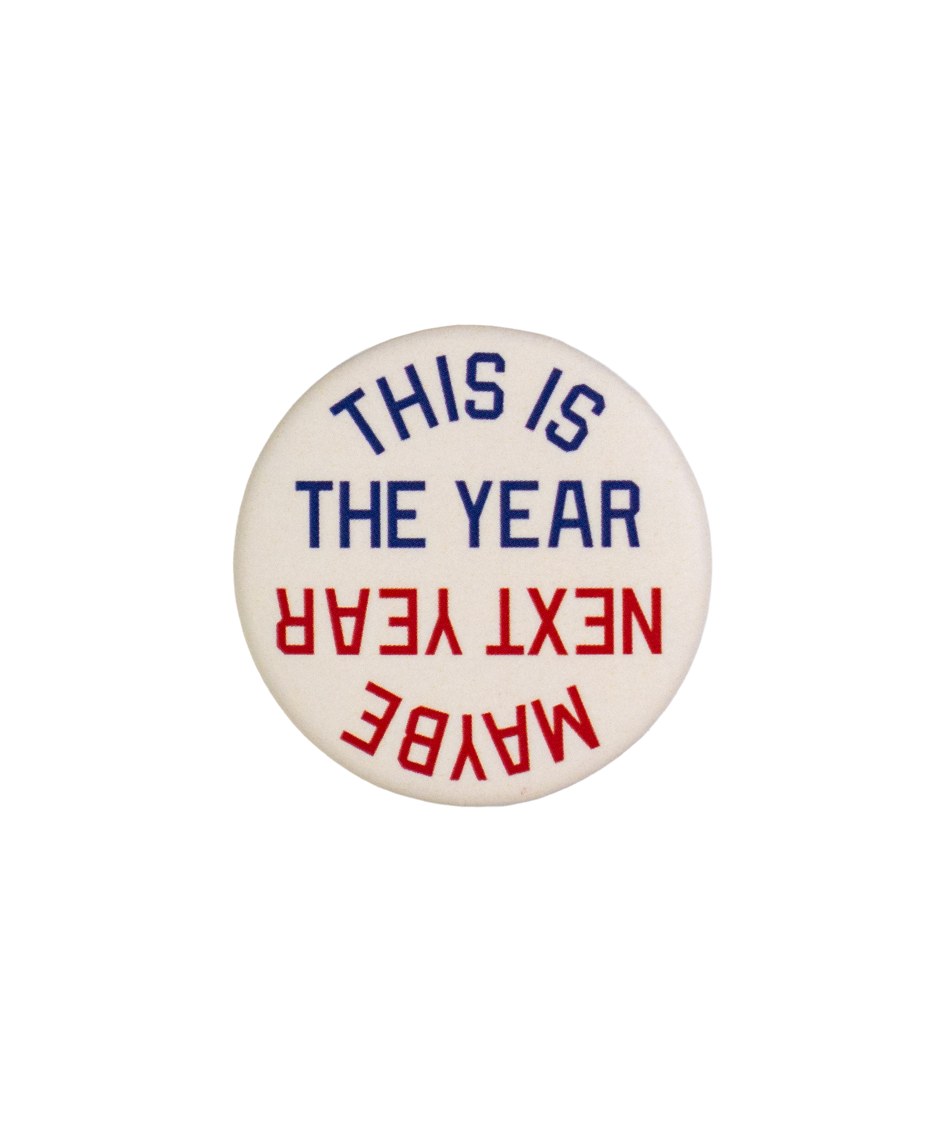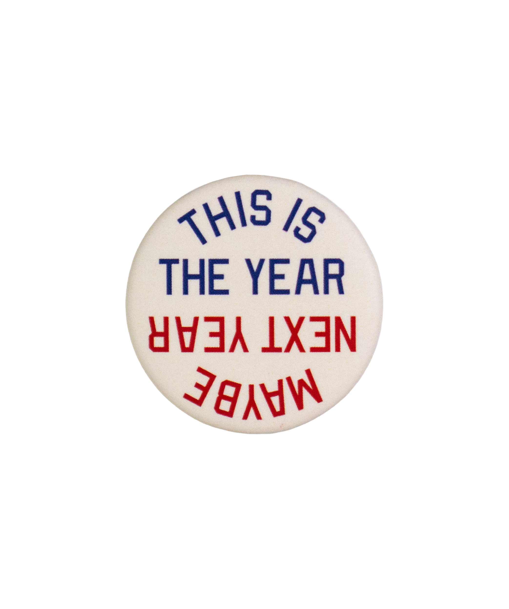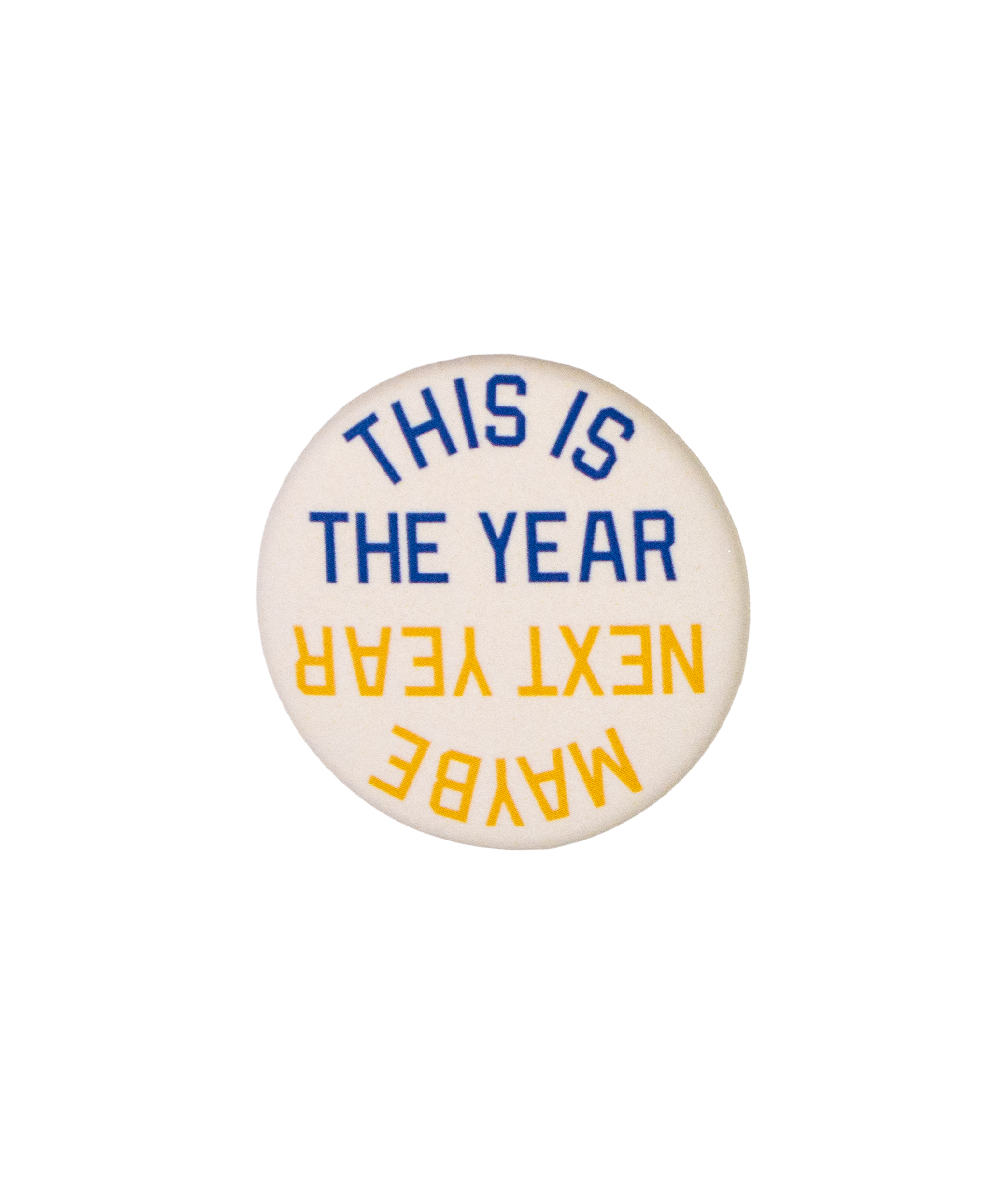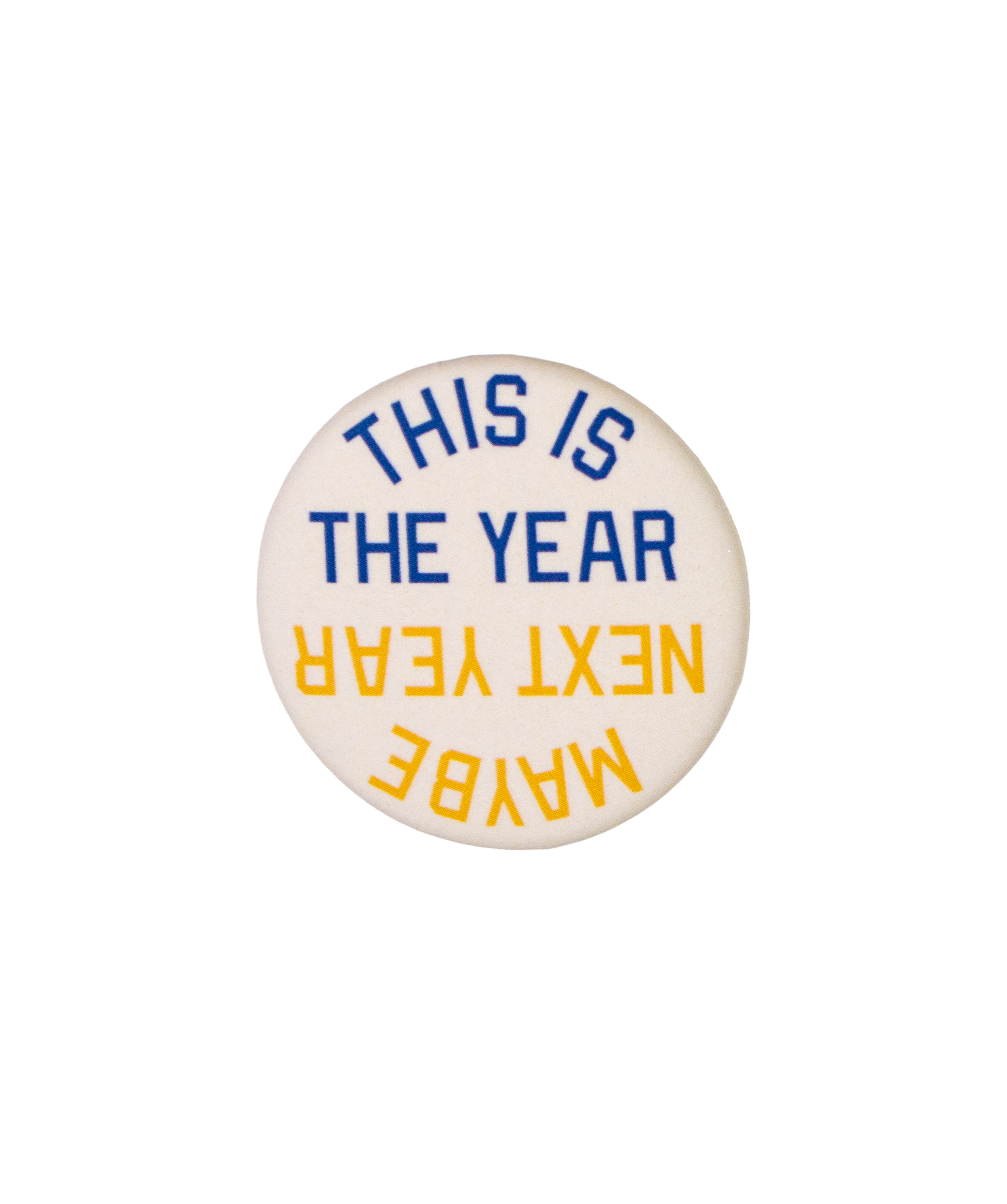 There's always next year... Show the team, no matter what, you'll always support them with this cream, red and blue or cream, gold and blue reversible pin.