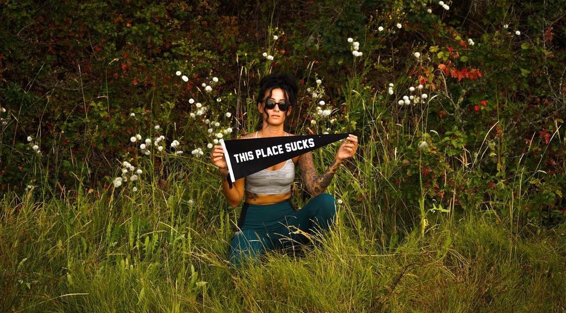 Sometimes you can’t sugarcoat it: the place where you’re at isn’t the best. Air your grievances against your home, your town, or your country with this black and white pennant.