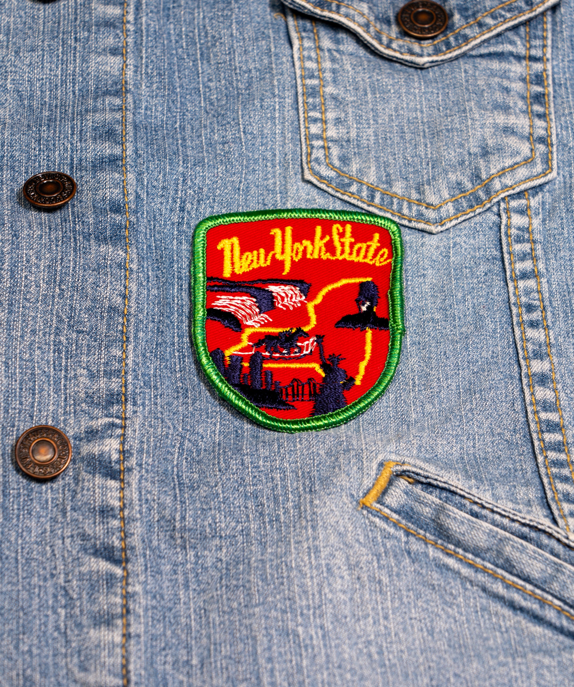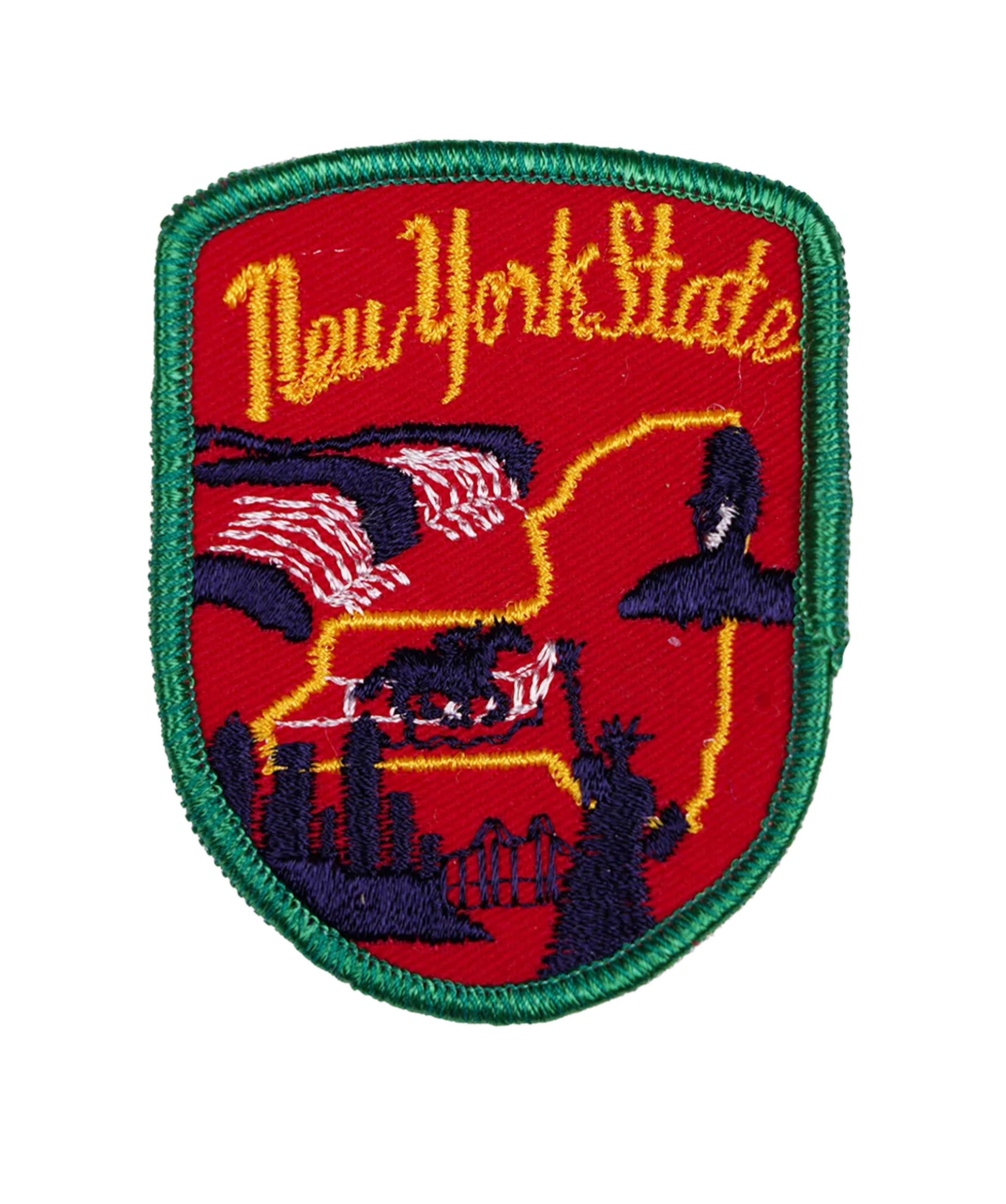 Show off your New Yorker pride with this red embroidered patch—featuring several illustrations honoring the state and city's rich histories.