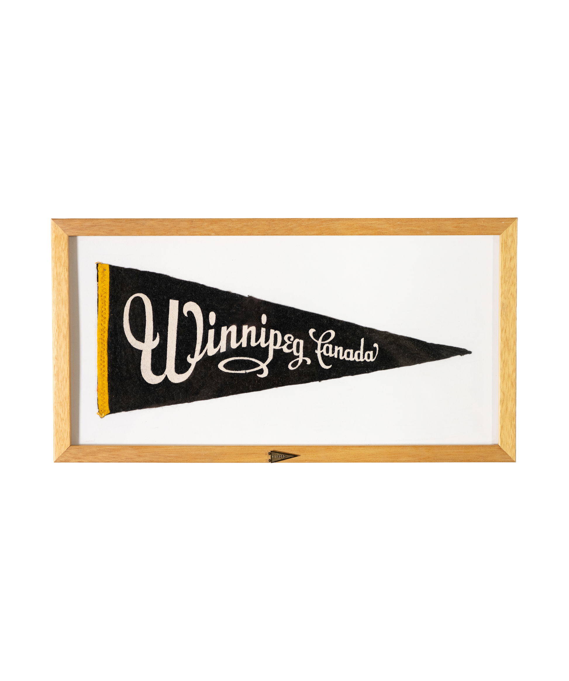 The Peg! This little vintage pennant may be small in size, but it captures the grandeur of the wonderful Winnipeg. This vintage pennant arrives framed and ready to hang.