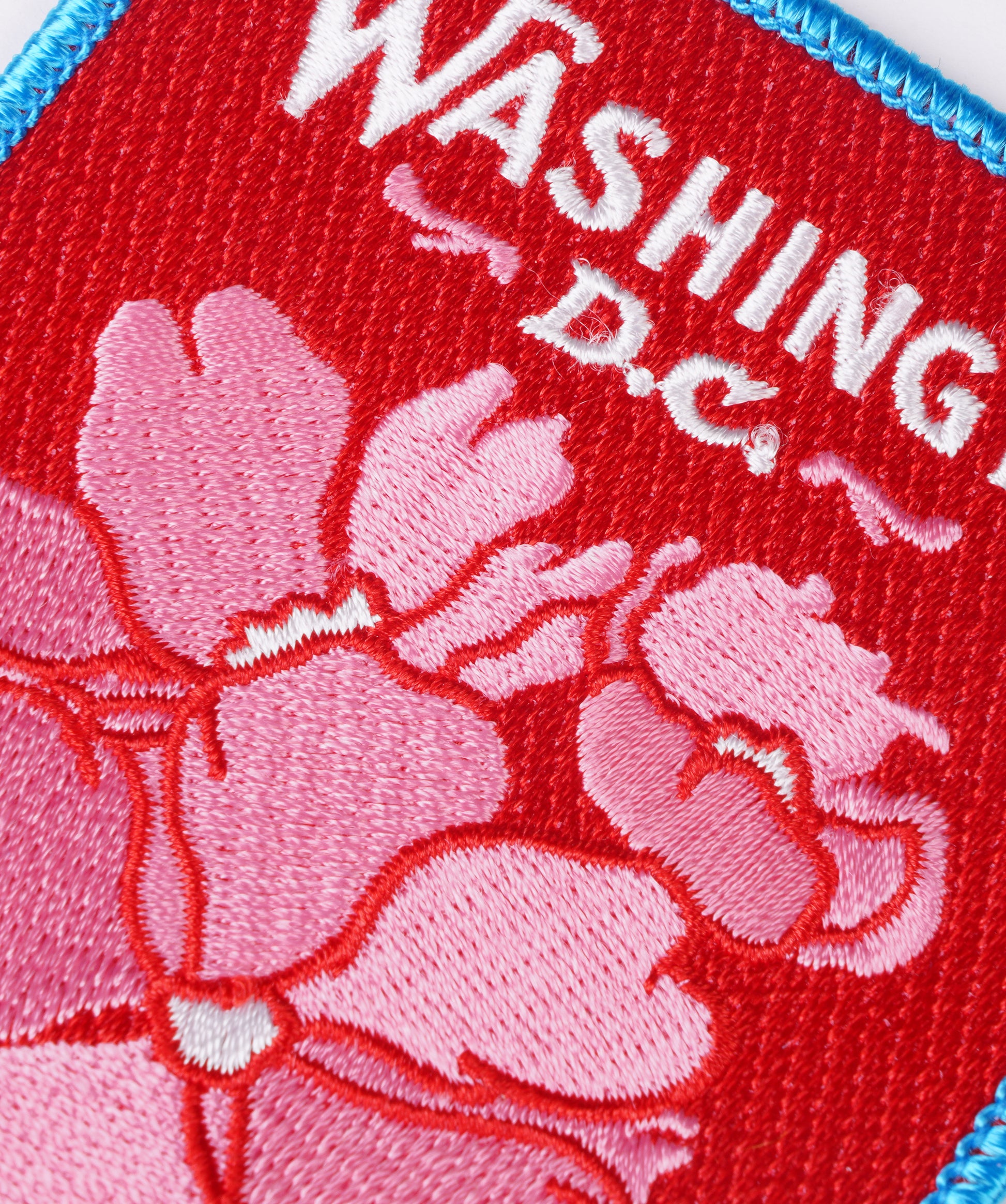 Show off your east coast Washingtonian pride with this red and pink embroidered patch. Inspired by the vintage patches we have sourced over the years this patch features the iconic attraction, the cherry blossom.