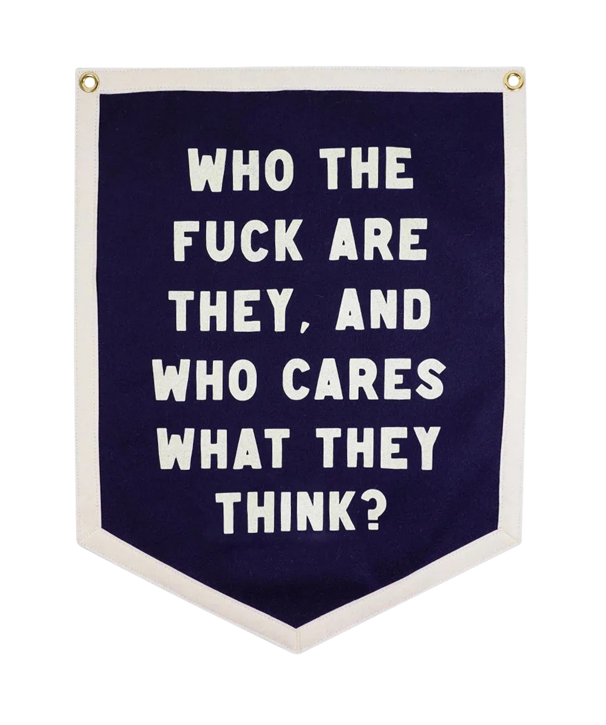 Their opinions don’t matter! Live authentically and stay true to yourself with this navy and cream camp flag.